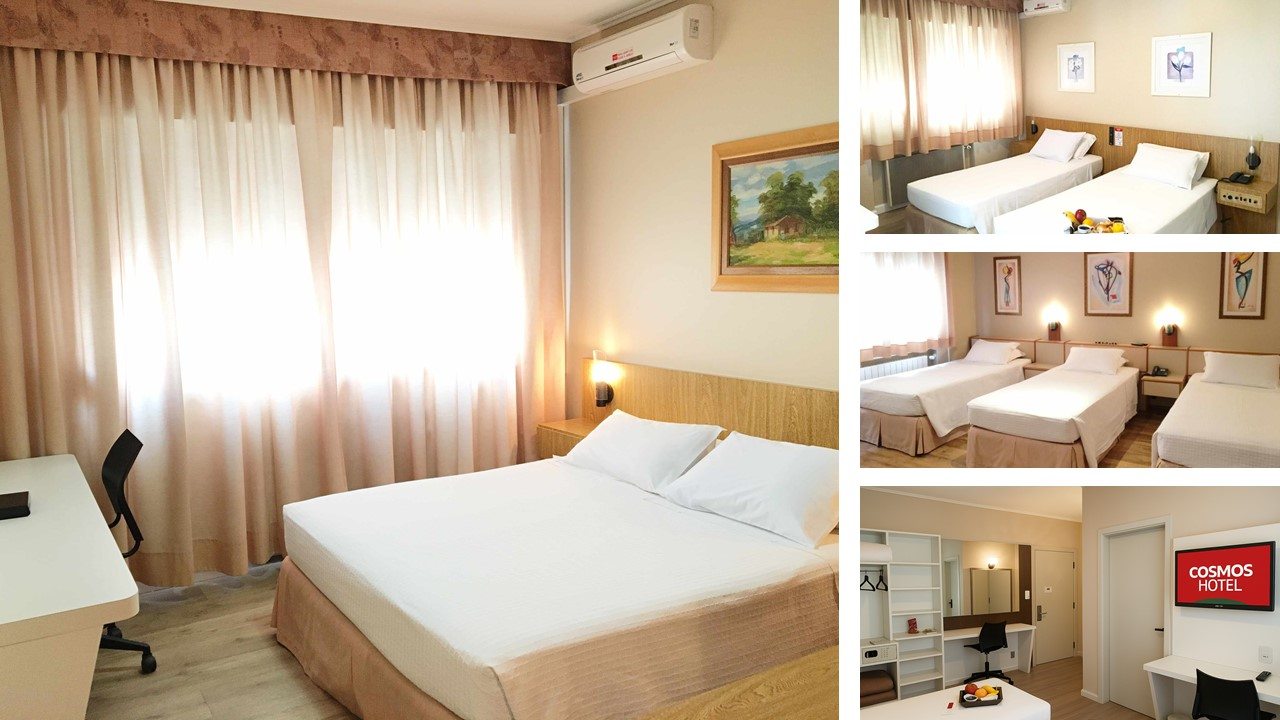 No Cosmos Hotel, as acomodações são projetadas para garantir conforto e praticidade aos hóspedes. Com ambientes modernos e aconchegantes, os quartos oferecem camas confortáveis, Wi-Fi gratuito e ar-condicionado. Seja para lazer ou negócios, você encontrará o espaço ideal para uma estadia agradável em Caxias do Sul.